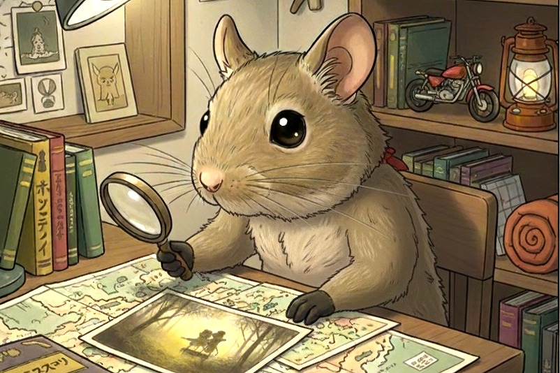 第11章 風が残したノート 2025年08月01日 旅から戻ったこむぎは、何日ぶりかもわからない静けさのなか、自室の窓辺に座っていた。時計は動いているはずなのに、時間だけが部屋に置き去りにされたようだった。壁には、旅立つ前に貼ったままの日本地図がある。東北の各地にはピンの跡が残り、赤い糸が幾重にも絡み合って、まるで蜘蛛の巣のように広がっていた。