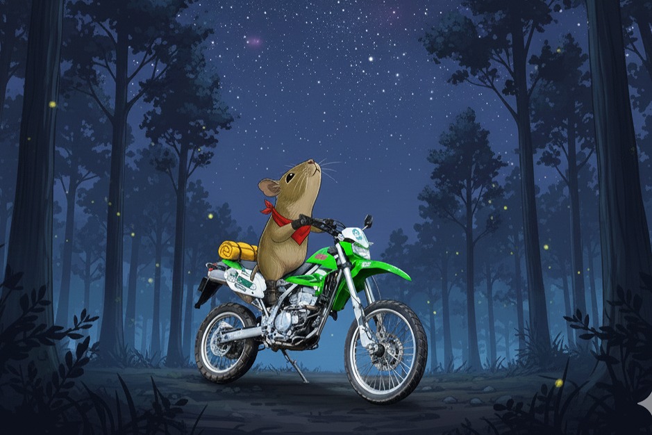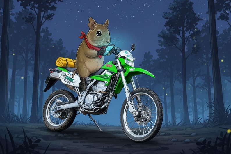 晩夏の田代峠。こむぎはカワサキKLX250を慎重に路肩へ寄せ、キーを切る。途端に、世界は別の顔を見せた。湿った土の匂い、苔むした岩肌から立ち上る冷気。それらが混ざり合い、胸の奥まで澄んだ空気が流れ込んでくる。
