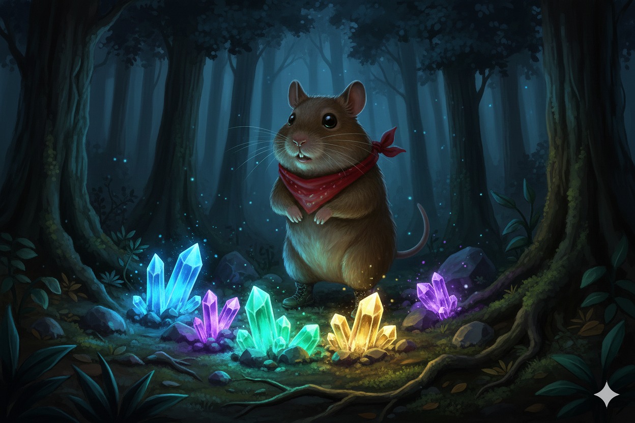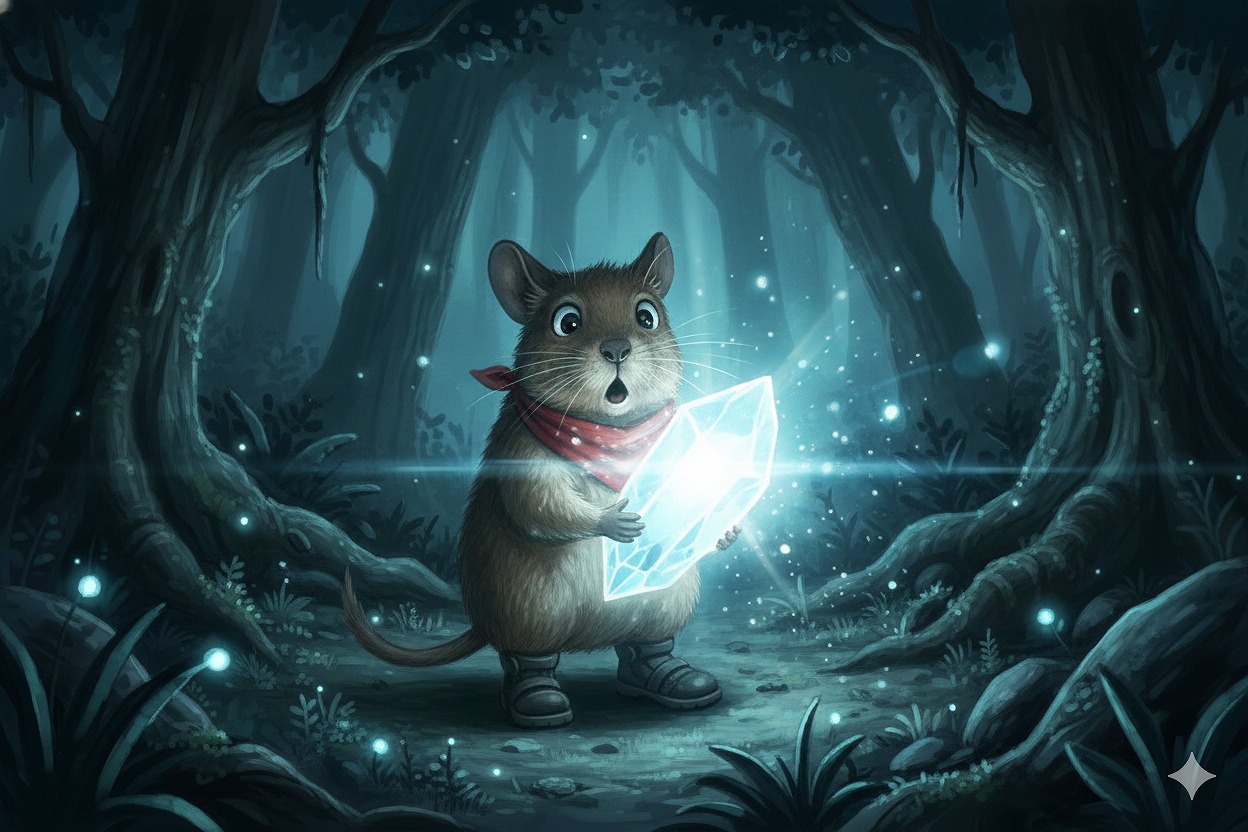 緋緋色金が瞬間、かすかな光を放った。まるで、こむぎの意思を受け止め、肯定するかのように。その光に導かれるように谷の奥、巨石の隙間に小さな凹みを見つけた。そこに封印されてきた核が眠っていた。