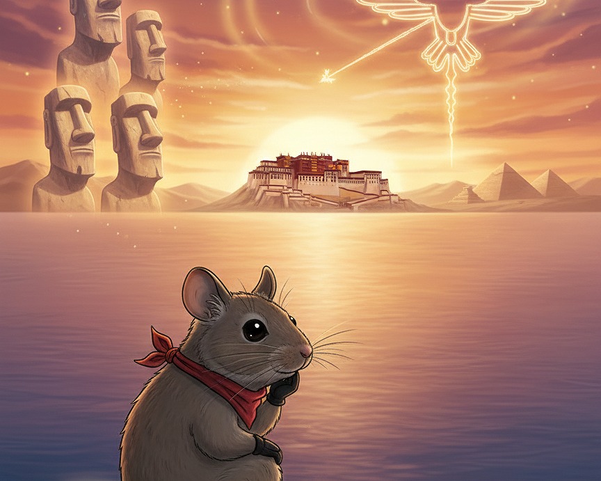 こむぎは風穴の前に座り込み、目を閉じた。深い沈黙のなか、遮光器土偶の"目"が思い浮かぶ。