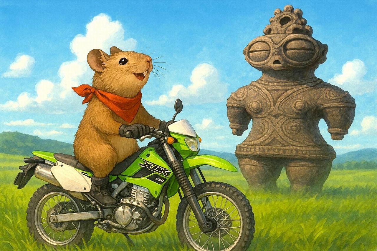 こむぎは微笑みながら、バイクのアクセルを軽くひねった。遮光器土偶の"眼"が静かに見送っていた。